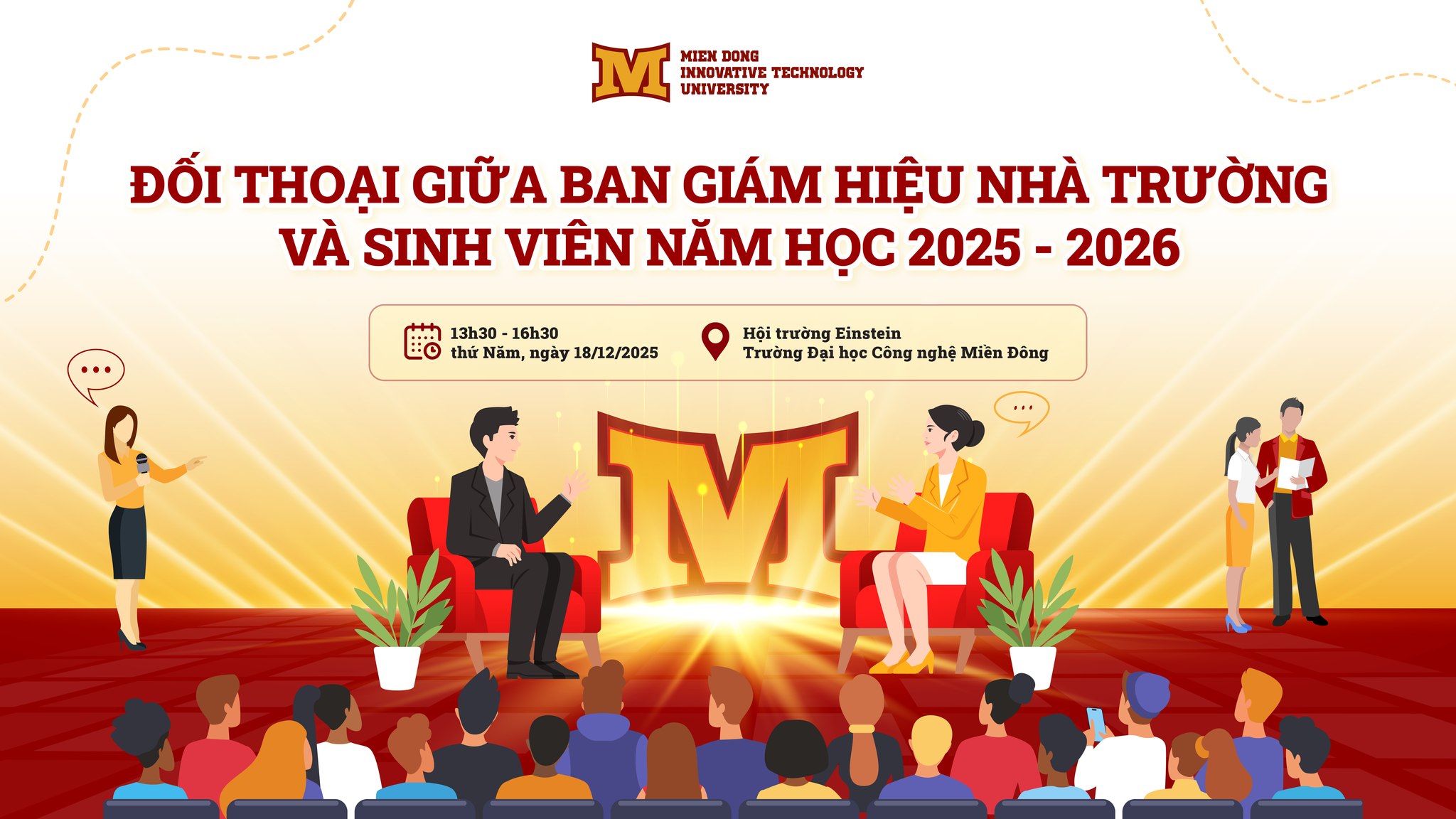 Nhằm thể hiện sự quan tâm và kết nối giữa Nhà trường và sinh viên, đồng thời lắng nghe, nắm bắt tâm tư, nguyện vọng của người học, Trường Đại học Công nghệ Miền Đông (MIT Uni.) tổ chức Buổi đối thoại giữa Ban giám hiệu Nhà trường và sinh viên năm học 2025 – 2026.
