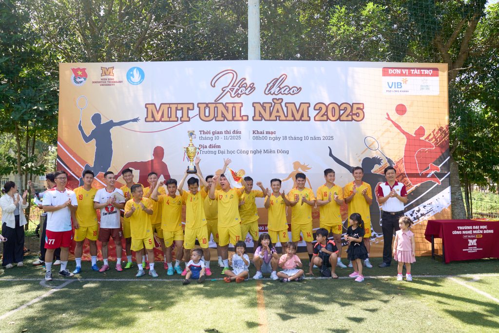 Trận cuối đã khép, nhưng tinh thần sân cỏ vẫn cháy mãi! Sáng ngày 19/10/2025, tại Trường Đại học Công nghệ Miền Đông (MIT Uni.), sân bóng rực rỡ sắc màu trong không khí sôi động của trận Bán kết và Chung kết Bảng Cán bộ & Doanh nghiệp. Sau những đường bóng đẹp mắt và tinh thần thi đấu máu lửa, các ngôi vị cao nhất đã chính thức được xướng tên.