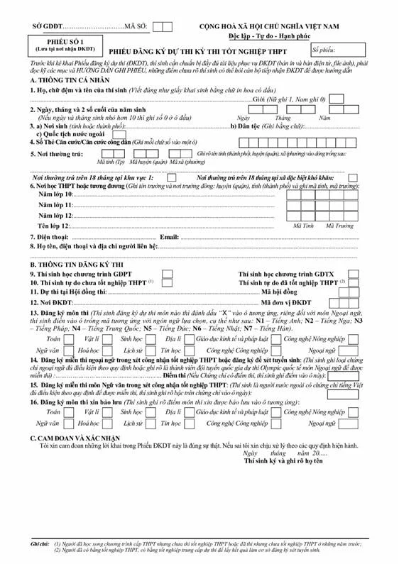 Hướng Dẫn Ghi Phiếu Đăng Ký Dự Thi Tốt Nghiệp THPT 2025