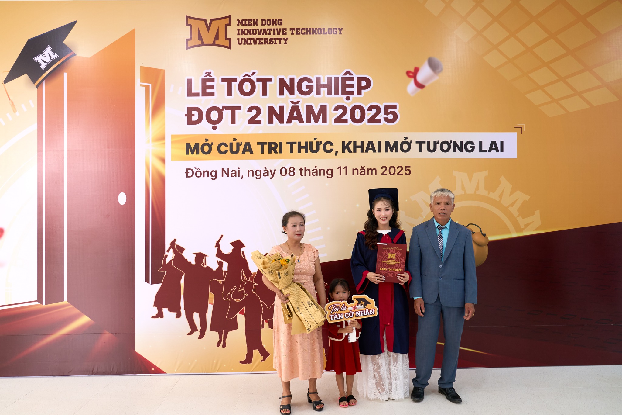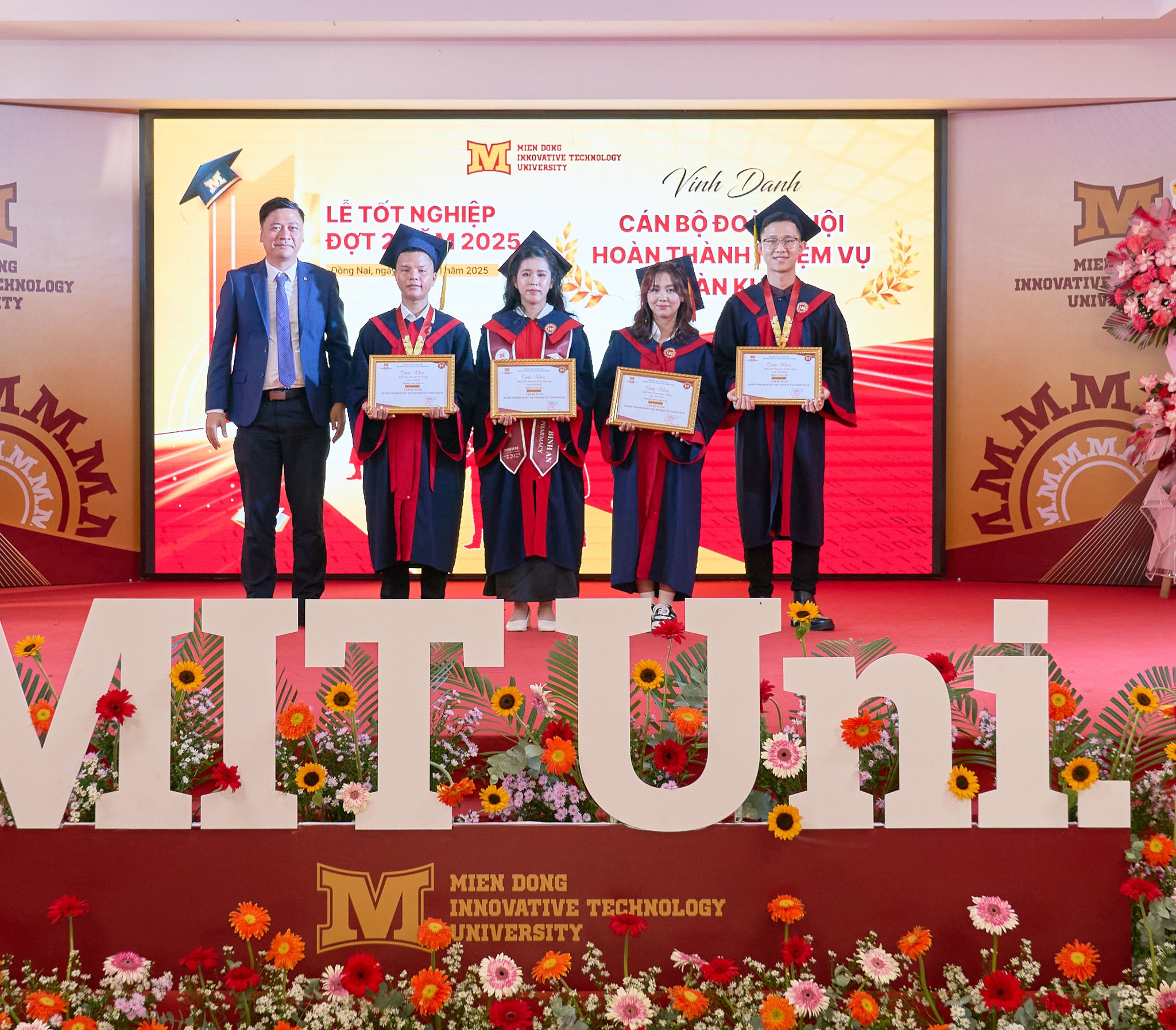Tiếp nối chuỗi sự kiện ngày 08/11/2025, trong không khí hân hoan và đầy xúc động, Trường Đại học Công nghệ Miền Đông (MIT Uni.) đã long trọng tổ chức Lễ Tốt nghiệp đợt 2 năm 2025. Buổi lễ là dấu mốc quan trọng, không chỉ là lời chia tay những năm tháng giảng đường mà còn là sự khởi đầu cho hành trình mới của hơn 174 tân Dược sĩ, tân Bác sĩ, tân Kỹ sư và tân Cử nhân.