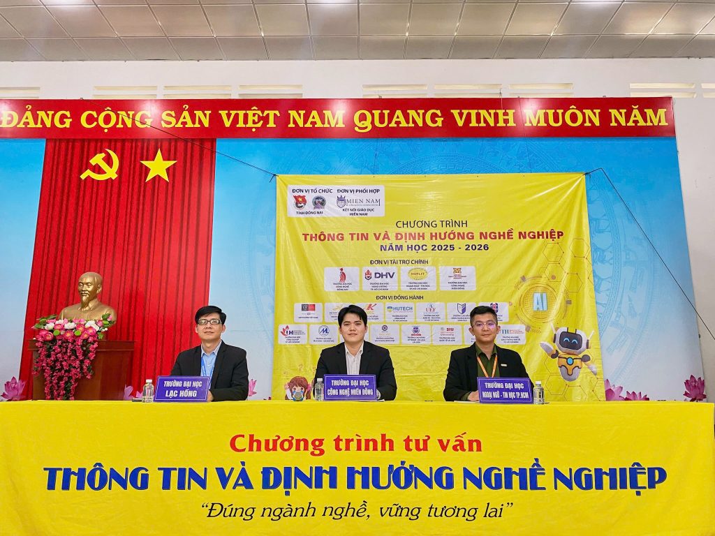 Trong khuôn khổ chương trình “Thông tin và định hướng nghề nghiệp năm học 2025–2026 – Đúng ngành nghề, vững tương lai”, Trường Đại học Công nghệ Miền Đông (MIT Uni.) đã tiếp tục hành trình tư vấn tuyển sinh tại các trường THPT khu vực Đồng Nai gồm: THPT Phú Ngọc, THPT Định Quán và THPT Tân Phú.