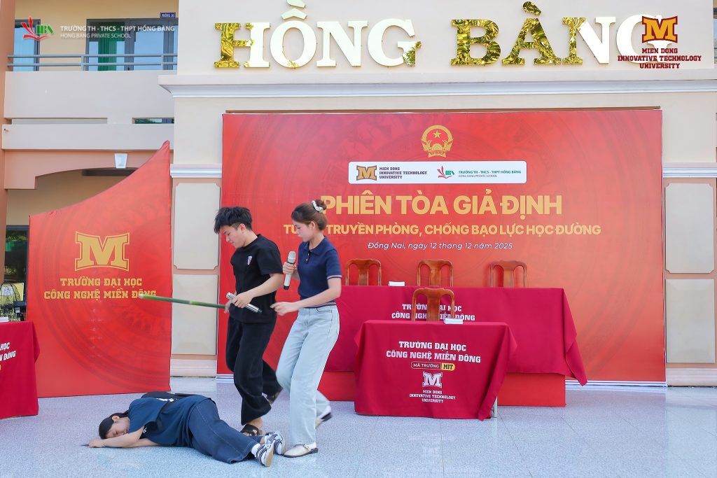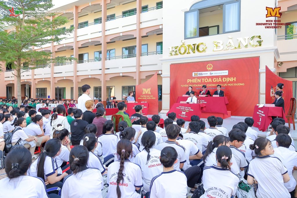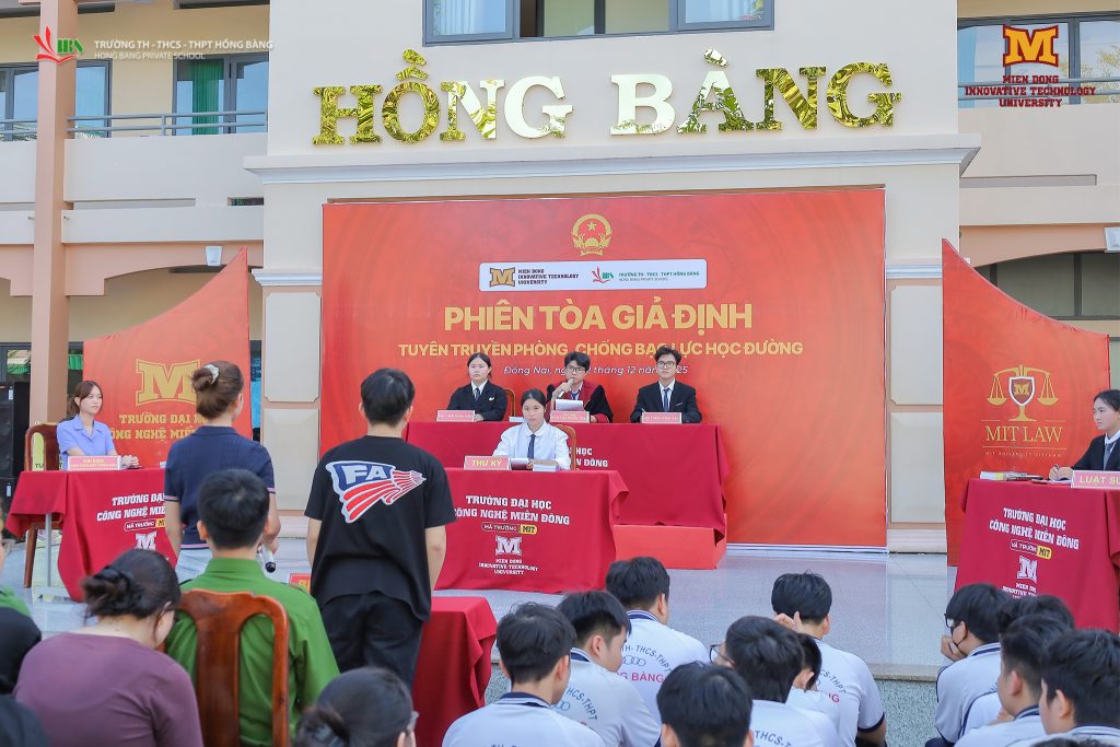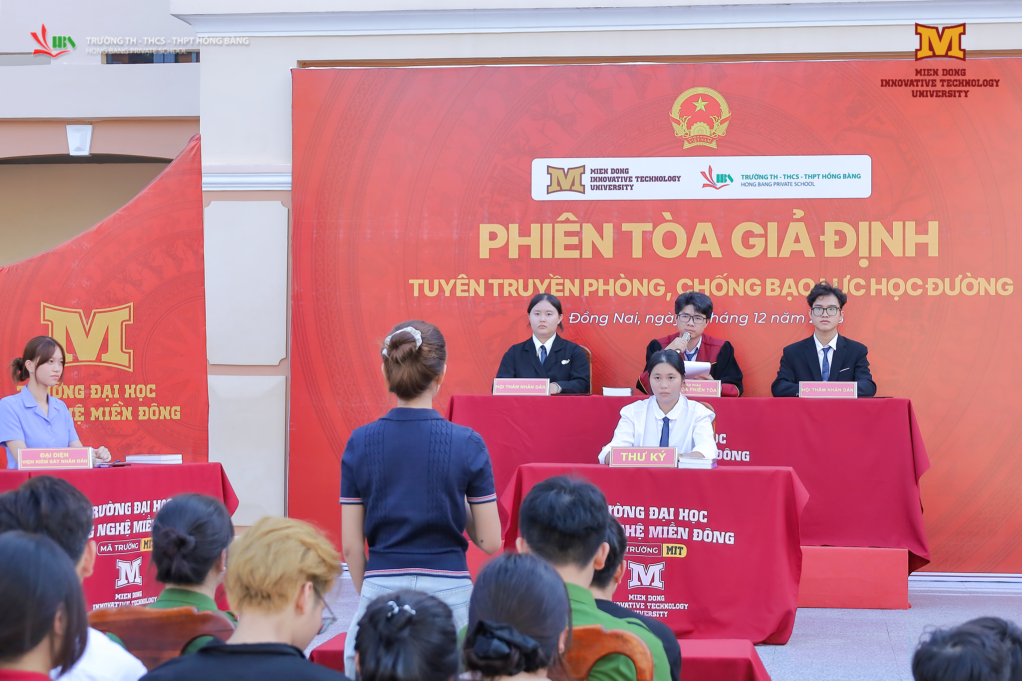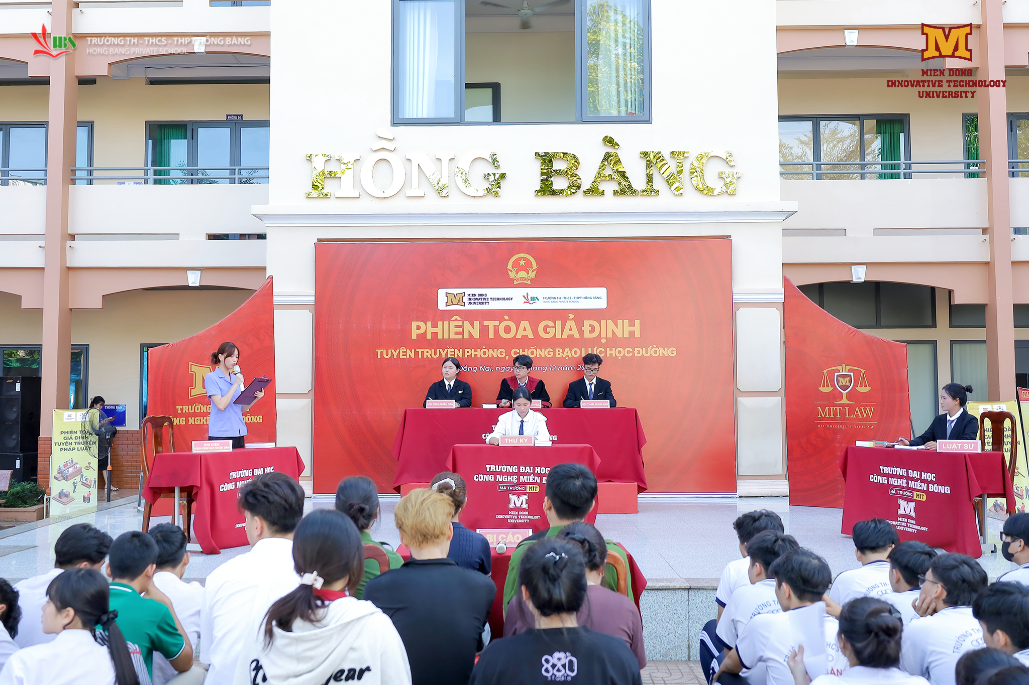 Nối tiếp thành công của chương trình Phiên tòa giả định được tổ chức tại Trường THPT Điểu Cải, chiều ngày 12/12, Trường Đại học Công nghệ Miền Đông (MIT Uni.) đã phối hợp cùng Trường TH-THCS-THPT Hồng Bàng tổ chức Phiên tòa giả định với chủ đề “Phòng, chống bạo lực học đường”.