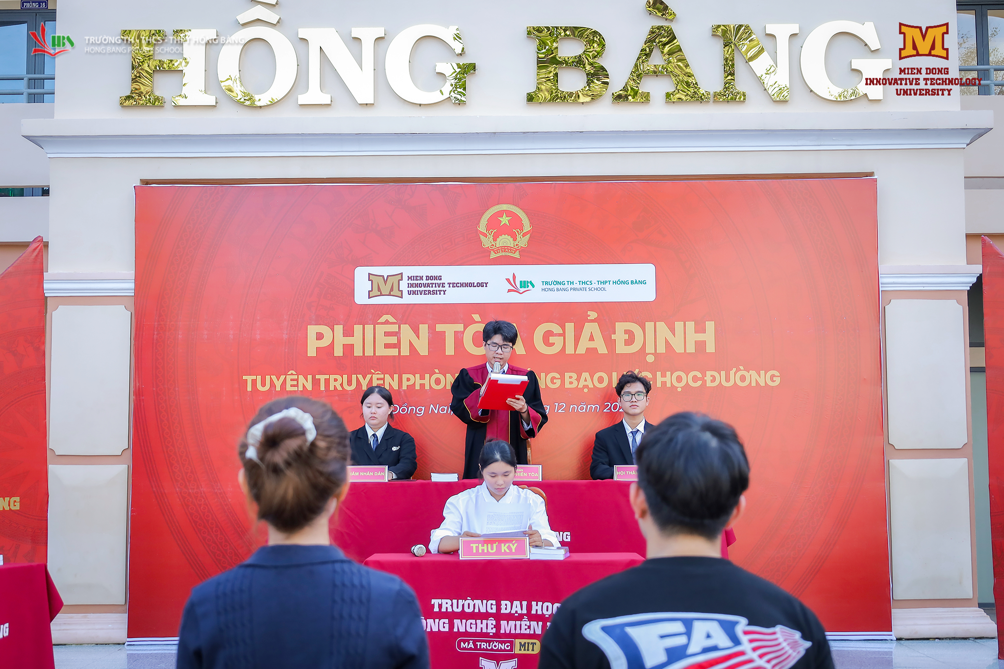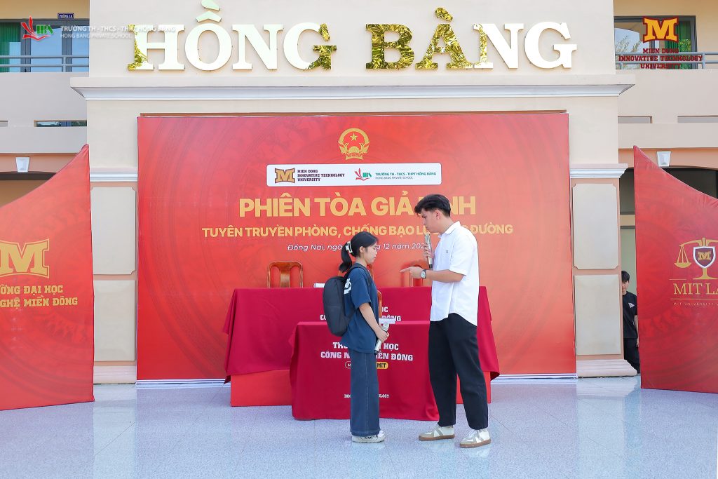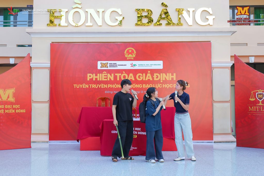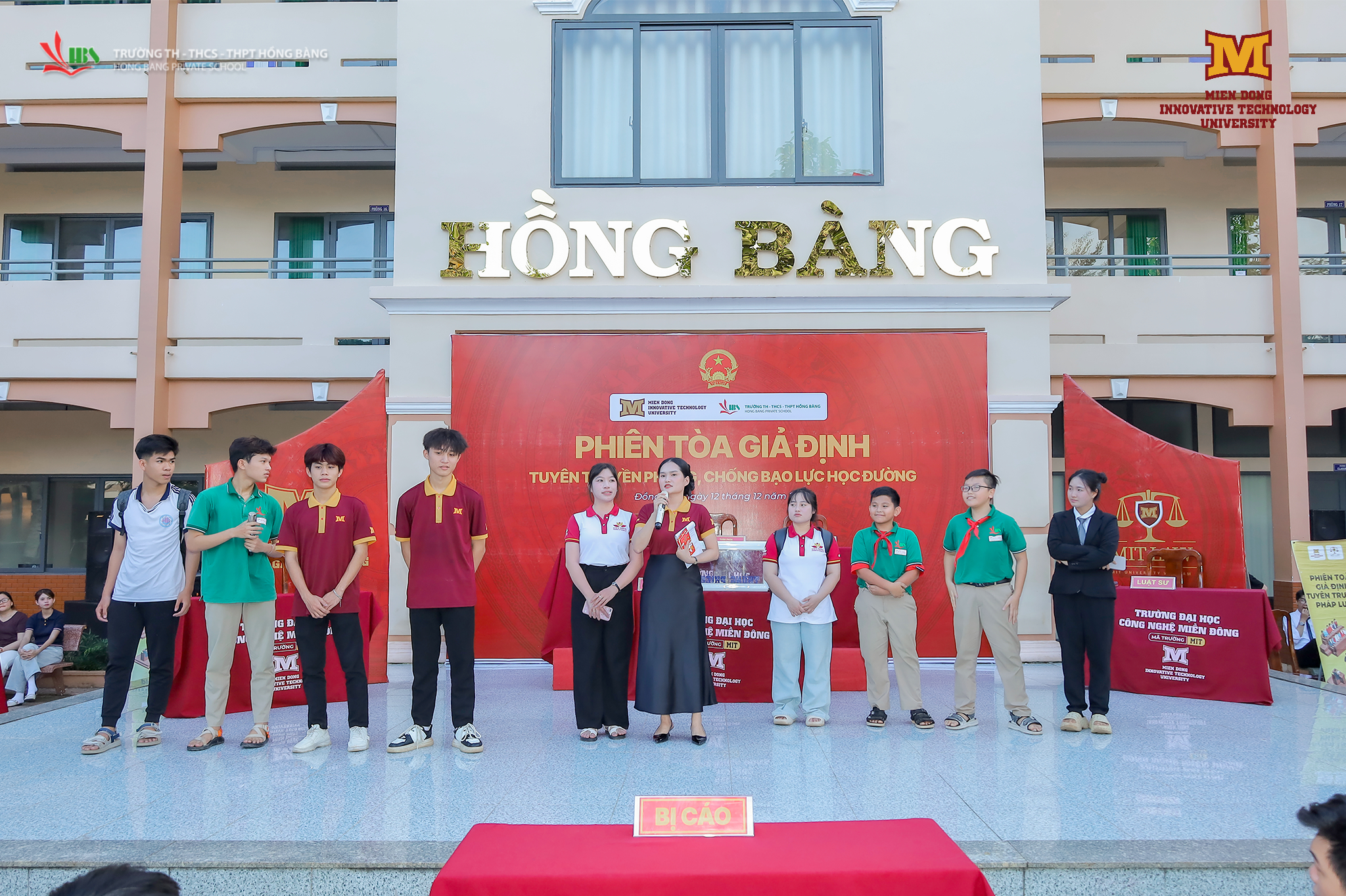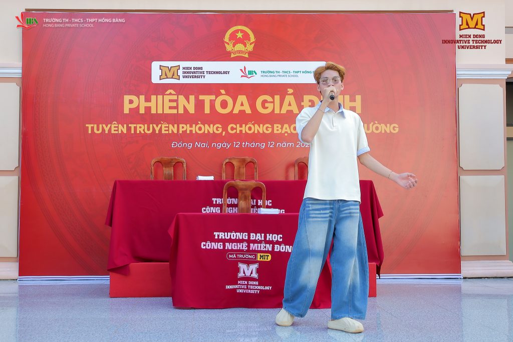 Nối tiếp thành công của chương trình Phiên tòa giả định được tổ chức tại Trường THPT Điểu Cải, chiều ngày 12/12, Trường Đại học Công nghệ Miền Đông (MIT Uni.) đã phối hợp cùng Trường TH-THCS-THPT Hồng Bàng tổ chức Phiên tòa giả định với chủ đề “Phòng, chống bạo lực học đường”.