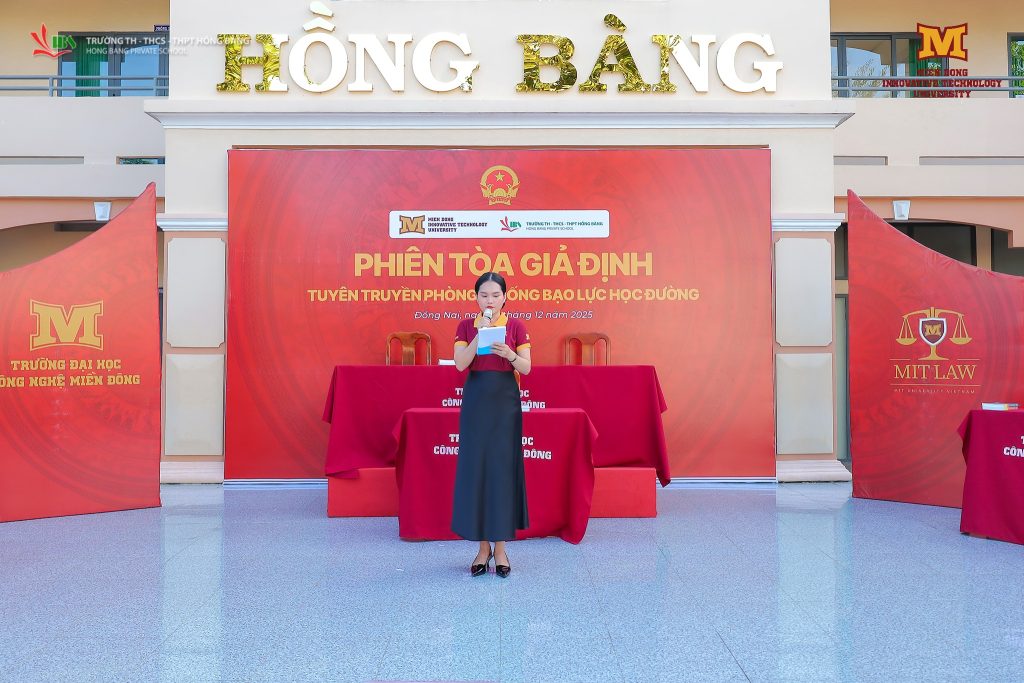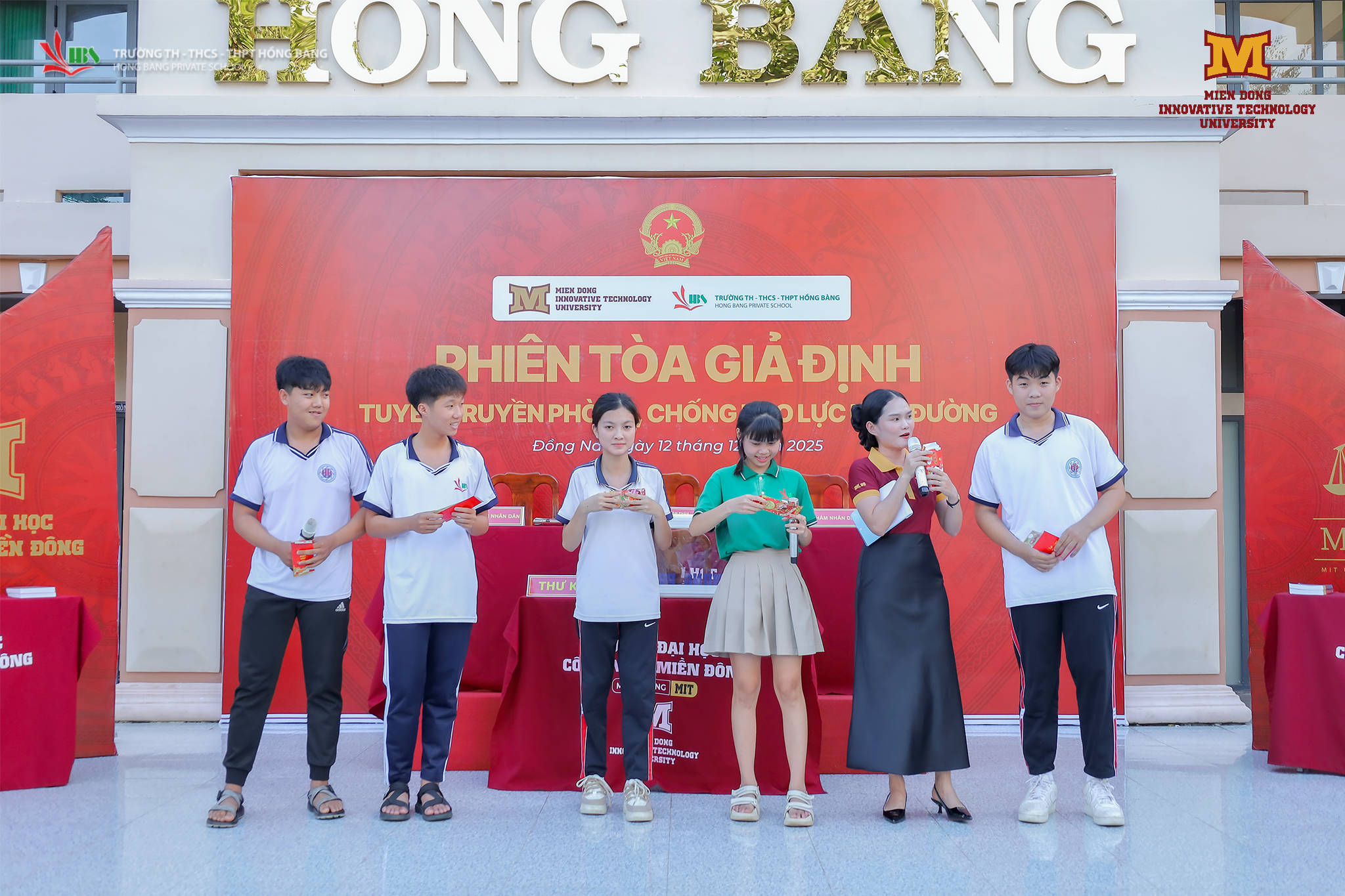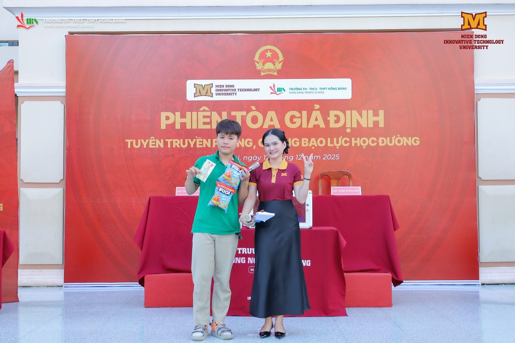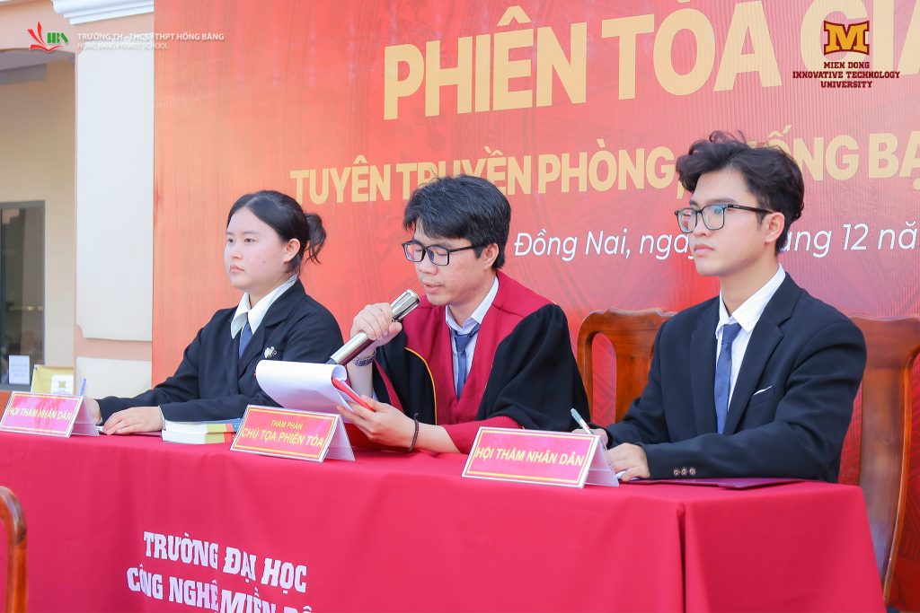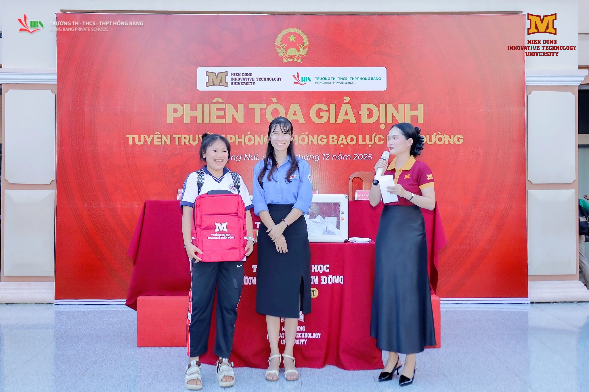 Nối tiếp thành công của chương trình Phiên tòa giả định được tổ chức tại Trường THPT Điểu Cải, chiều ngày 12/12, Trường Đại học Công nghệ Miền Đông (MIT Uni.) đã phối hợp cùng Trường TH-THCS-THPT Hồng Bàng tổ chức Phiên tòa giả định với chủ đề “Phòng, chống bạo lực học đường”.