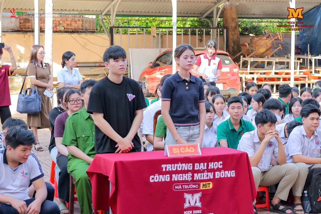 Phần tiểu phẩm mở đầu do sinh viên Câu lạc bộ MITLAW thực hiện đã tạo ấn tượng mạnh, giúp học sinh hình dung rõ bối cảnh vụ việc và nguyên nhân vụ án được đưa ra xét xử.