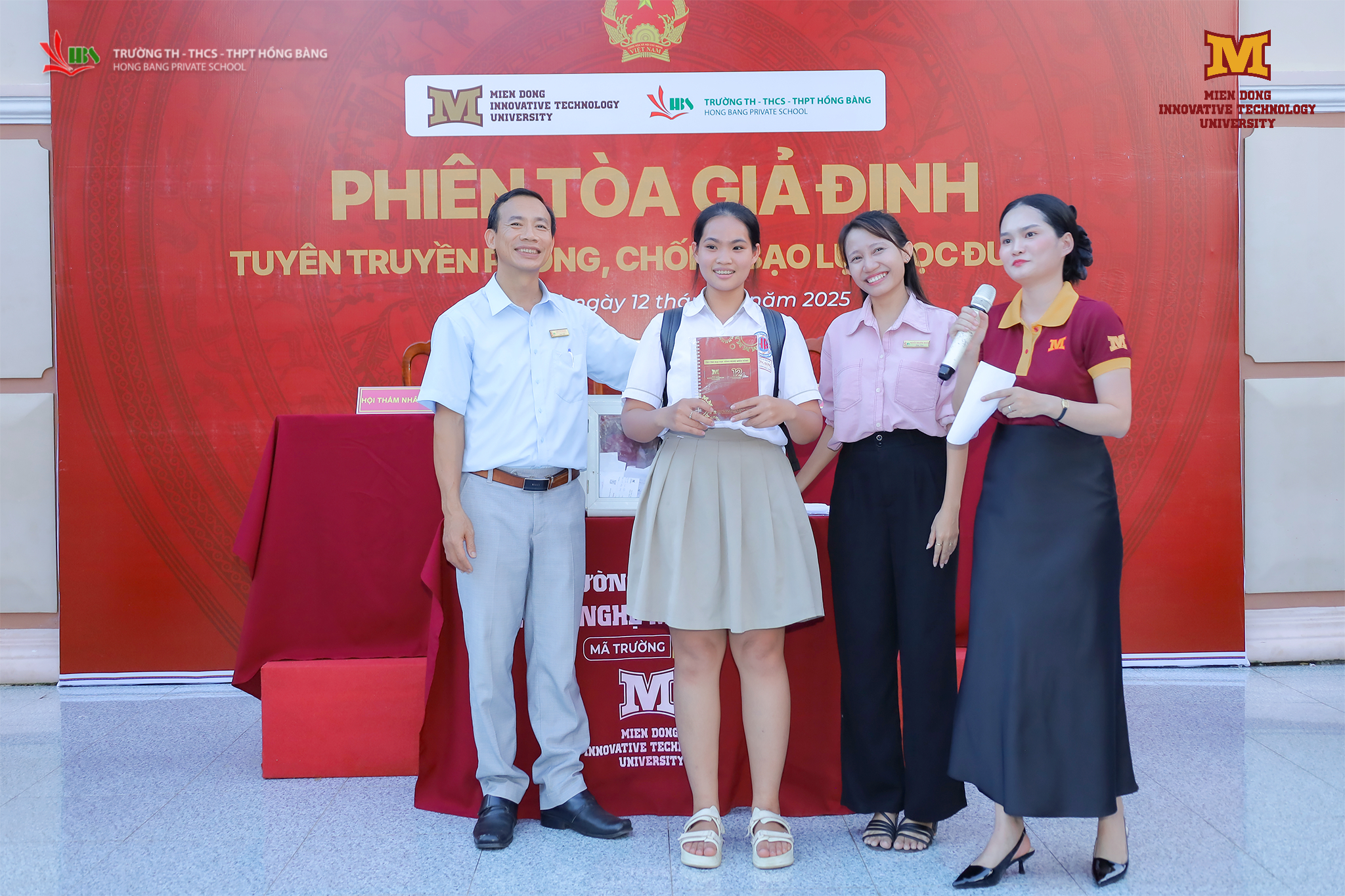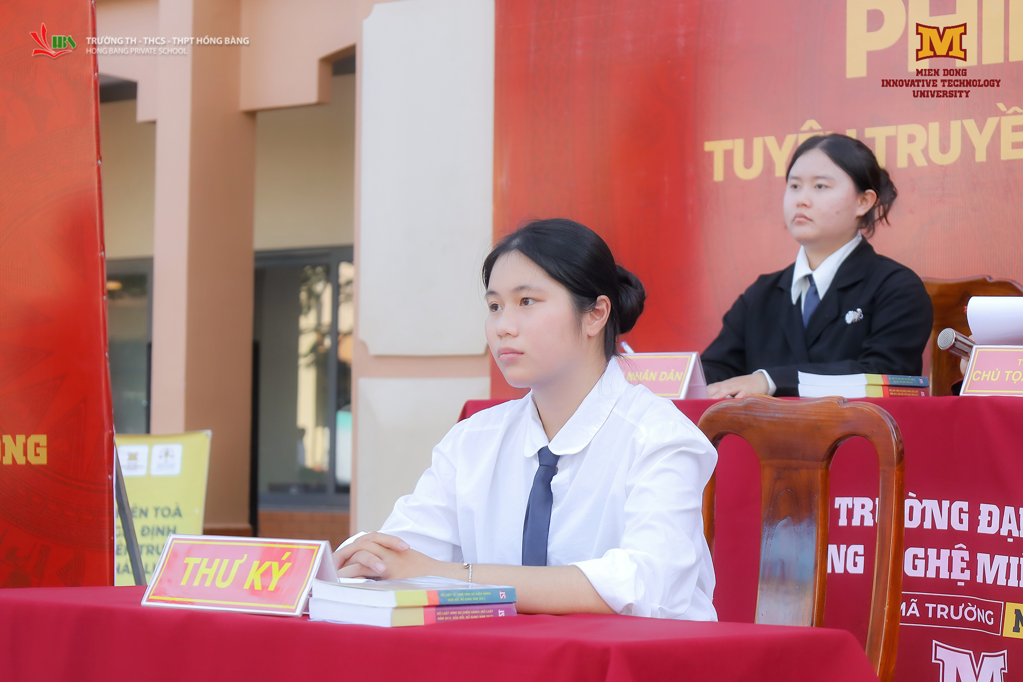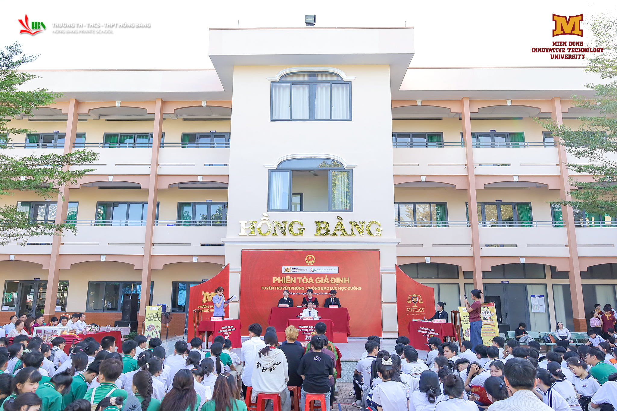 MIT Uni. xin trân trọng cảm ơn Quý thầy cô và toàn thể học sinh Trường TH-THCS-THPT Hồng Bàng đã phối hợp và tham gia chương trình với tinh thần nghiêm túc, trách nhiệm. Đặc biệt, xin ghi nhận sự chuẩn bị chu đáo của Câu lạc bộ MITLAW, góp phần giúp sinh viên vận dụng kiến thức pháp luật từ giảng đường vào thực tiễn.