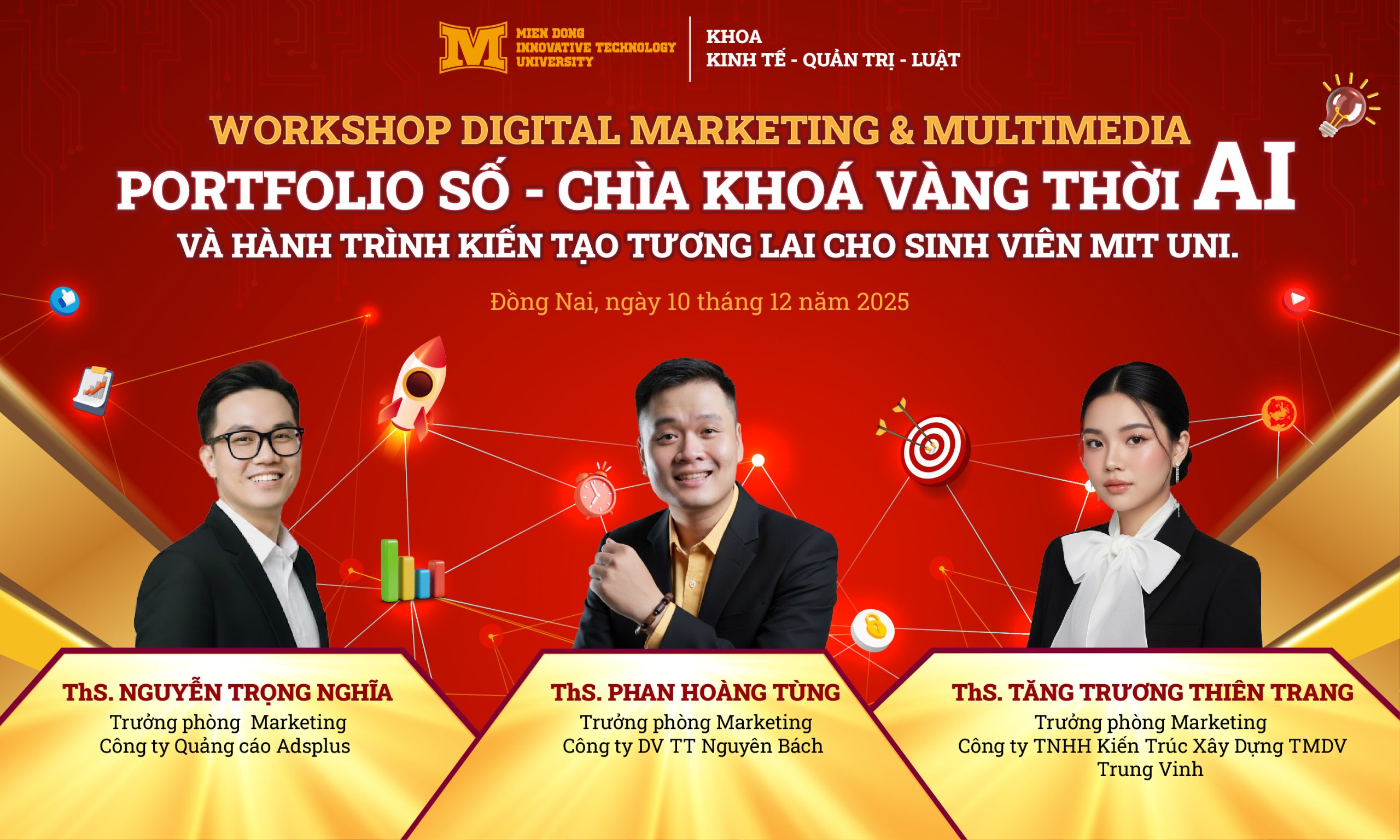 Để giúp các Miter nắm giữ lợi thế dẫn đầu, Khoa Kinh tế – Quản trị – Luật tổ chức Workshop ĐỘC QUYỀN, nơi bạn sẽ được “mở khóa” tất cả bí mật để xây dựng Portfolio “chuẩn doanh nghiệp” trong thời đại AI: