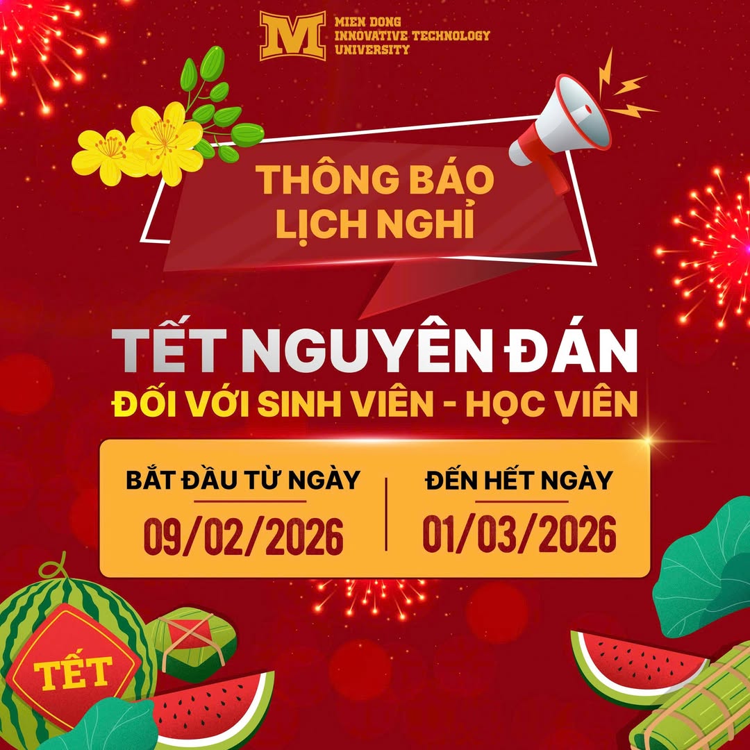 Thời gian nghỉ Tết: Từ Thứ Hai, ngày 09/02/2026 (22 tháng Chạp năm Ất Tỵ) đến hết Chủ Nhật, ngày 01/03/2025 (19 tháng Giêng năm Bính Ngọ).